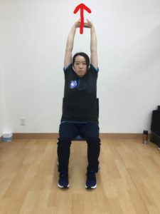 ①手を組んで、上に伸びをする!手のひらは上を向けましょう!